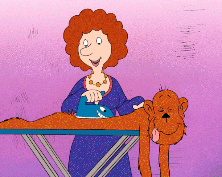 La mère du Prince (comtesse de son état) en train de repasser le singe